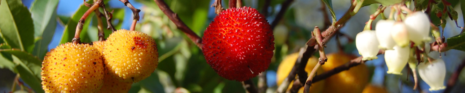 Il Corbezzolo è un arbusto o piccolo albero sempreverde, alto fino a 5–8 m.Vive in tutta la macchia mediterranea, in terreni silicei e soleggiati.Le foglie sono alterne, coriacee, lucide, con margine seghettato. I fiori sono bianchi o bianco-rosati, riuniti in grappoli penduli, tipici dell’autunno (ottobre–dicembre). I frutti sono bacche globose di colore rosso aranciato, maturano un anno dopo la fioritura, quindi sulla stessa pianta si trovano contemporaneamente fiori e frutti.
